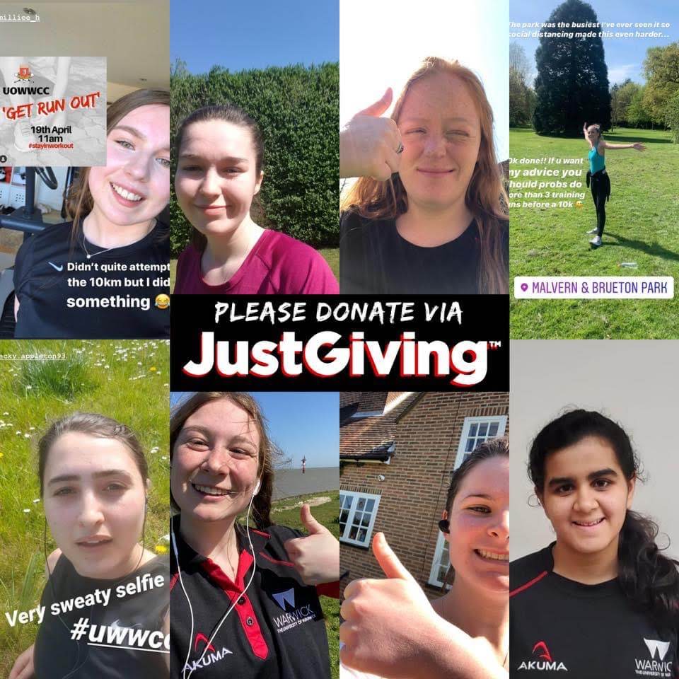 One of our main fundraisers this year was getting a group of women from our club together to enter the Birmingham 10k (scheduled for the 19th April). As well as being a massive fundraising opportunity, this was going to be an extremely great achievement as many of us had never done any sort of running prior to signing up for this. Unfortunately the Birmingham 10k had to be postponed due to Covid-19, but we didn’t let our hard work and training go to waste. Out of this situation was born our ‘Get Run Out’ event. Members of the club all did an hour of exercise at the same time at their own homes, with many of us completing the original 10k anyway- which was a monumental day for a lot of us having never reached that distance before. The event was a massive success, raising an absolutely incredible £1,074 between us for CRASAC! After the success of this event, we would love to make this an annual event and make Get Run Out a long lasting of UWWCC! So watch this space!